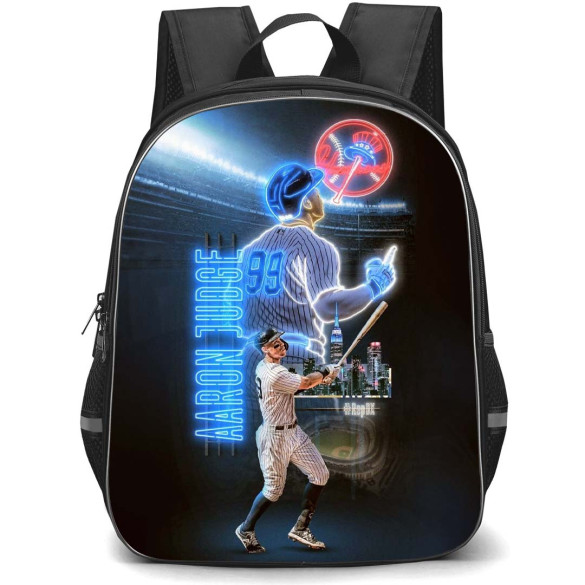 Shop the MLB Aaron Judge Backpack StudentPack featuring an exclusive Aaron Judge 99 New York Yankees Back Neon Effect Poster. Get your game day gear in style with this must-have backpack.Our StudentPack is ultra durable and trendy, designed especially for students both young and old. Featuring one main compartment, a front compartment, and all of the space you could ever imagine. Durable and lightweight, the StudentPack is the perfect throw-on-and-go backpack for students.Features:- Roomy main compartment- Front compartment- 2 mesh pockets on both sides- Built to last, high quality waterproof oxford cloth- Adjustable padded shoulder straps- Front pocket with built in organizer- Padding on the back panel for superior comfort- Padded grab handle on top- High quality metal zips- 100% recycled undyed linerSpecifications:Fabric: 100% Polyester Oxford ClothCapacity: 15L (Small size) / 27L (Large size)Weight: 17.63 oz / 500gDimensions: Large size: 16.5" x 13" x 6.3" / 42 x 33 x 16 cmSmall size: 13" x 11" x 6.3" / 32 x 28 x 16 cm